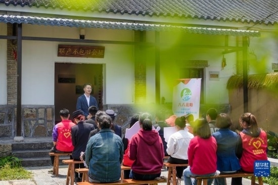 5月4日,在浙江省湖州市長興縣和平鎮(zhèn)狄家 村,當?shù)厍嗄旮刹繃惶霉采锑l(xiāng)村改革,暢談家鄉(xiāng)發(fā)展。