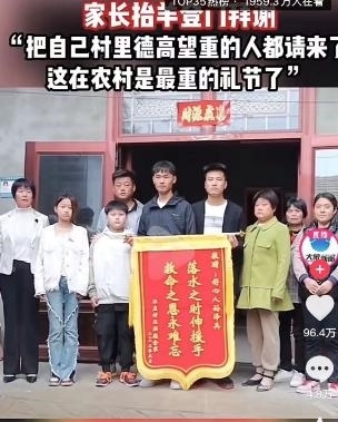河南濮陽,一小伙跳進黃河救出小孩,被救孩子家長抬羊謝恩。