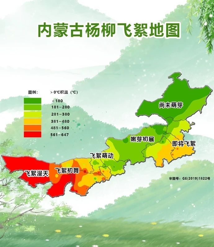 根據(jù)內(nèi)蒙古氣象部門提供的楊柳飛絮地圖可以看出,目前,阿拉善、烏海地區(qū)已經(jīng)進(jìn)入飛絮漫天階段,巴彥淖爾、鄂爾多斯、呼和浩特、包頭地區(qū)已經(jīng)陸續(xù)進(jìn)入飛絮萌動階段和飛絮初舞階段,通遼大部、赤峰東南部地區(qū)即將飛絮,其余地區(qū)還處于嫩芽初展和尚未萌芽階段。