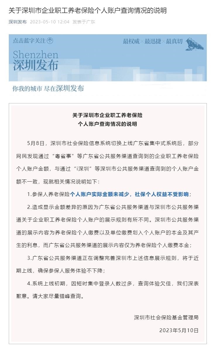 ·深圳社保系統(tǒng)切換,個人賬戶大幅減少?官方回應(yīng):實際金額未減少,個人權(quán)益不受影響。