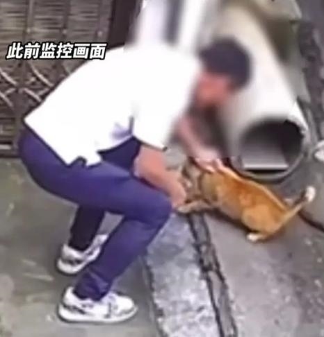 ·男子用刀殘忍割斷貓尾,已被警方抓獲指認(rèn)現(xiàn)場。
