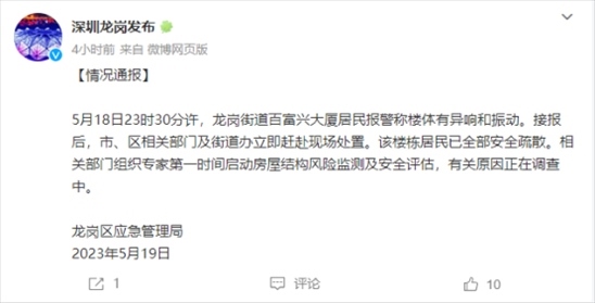 ·官方回應深圳一大廈異響振動:已疏散居民,啟動監(jiān)測評估。