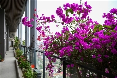 這棟“三角梅大樓”一共有32層(躍層),兩個單元,每層8戶,一共240戶人家。三角梅種植在每一層的公共空間長廊上,每家每戶前都有三角梅種植點。久而久之,每家每戶也在三角梅的基礎(chǔ)上,按照個人愛好興趣種植了更多的綠植、瓜果、蔬菜等,成為小區(qū)一景。