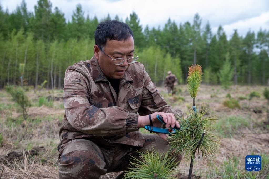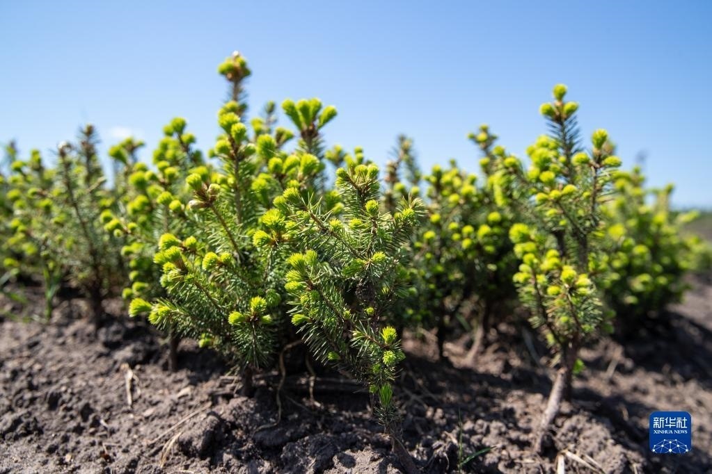 這是5月24日拍攝的伊春森工集團(tuán)上甘嶺林業(yè)局公司溪水林場(chǎng)內(nèi)栽種的紅松樹(shù)苗。