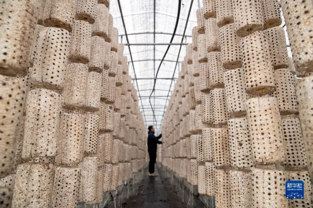 5月20日,在伊春森工集團(tuán)上甘嶺林業(yè)局公司,工作人員在檢查木耳生長(zhǎng)情況。