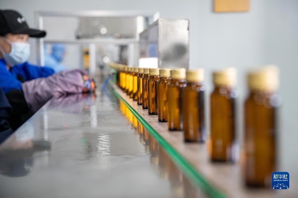 5月24日,在伊春菁樺生物科技有限公司生產(chǎn)車間內(nèi),工人在進(jìn)行樺樹(shù)汁飲品灌裝作業(yè)。