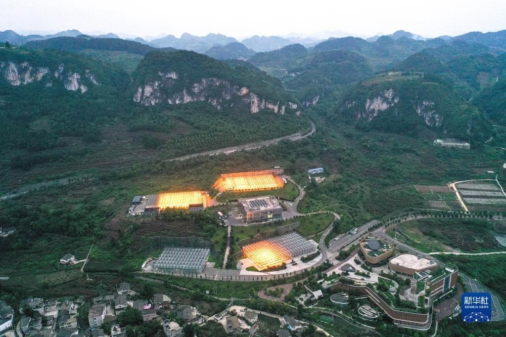 這是5月23日拍攝的貴陽(yáng)市開(kāi)陽(yáng)縣南江蔬菜良種繁育中心育苗大棚夜間補(bǔ)光場(chǎng)景(無(wú)人機(jī)照片)。補(bǔ)光更有利于種苗生長(zhǎng),縮短育苗周期。