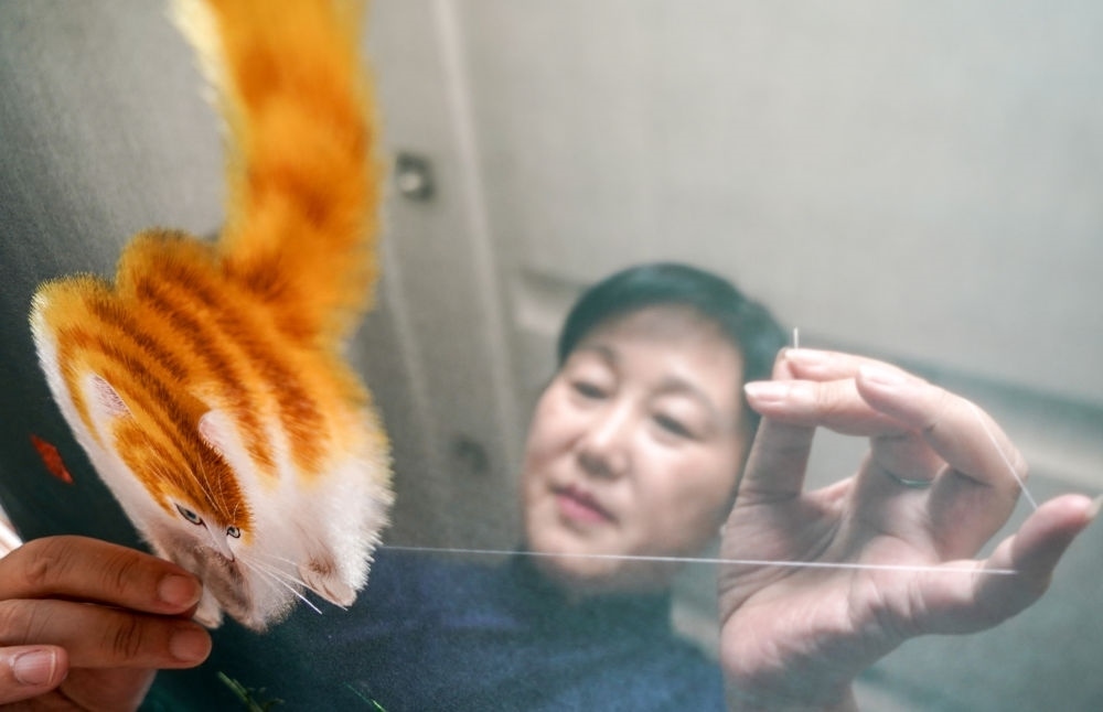 蘇繡國(guó)家級(jí)非遺傳承人姚惠芬在刺繡雙面繡(2019年6月11日攝)。新華社記者 楊磊 攝