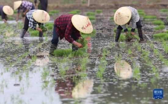 當日,江蘇省淮安市洪澤區(qū)岔河鎮(zhèn)舉行第八屆禾采插秧節(jié)活動,村民和游客在稻田里體驗農(nóng)耕樂趣,感受田園生活。