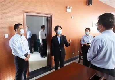天津高院黨組書記、院長(zhǎng)李靜(右三)到靜海區(qū)法院調(diào)研,實(shí)地查看靜海鎮(zhèn)人民法庭。
