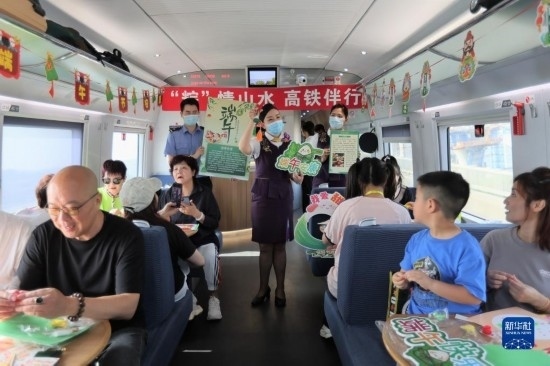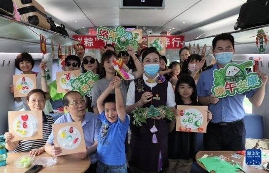 端午節(jié)前夕,鐵路上??瓦\(yùn)段在列車(chē)上邀請(qǐng)旅客參加端午民俗活動(dòng),迎接端午佳節(jié)。