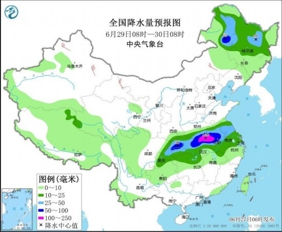 圖4 全國降水量預(yù)報圖(6月29日08時-30日08時) 圖自中央氣象臺網(wǎng)站