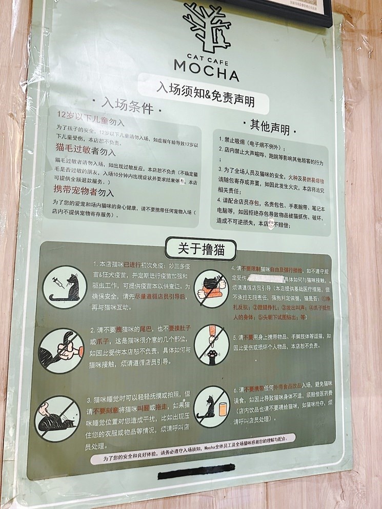 貓咖店內(nèi)的“入場(chǎng)須知”。