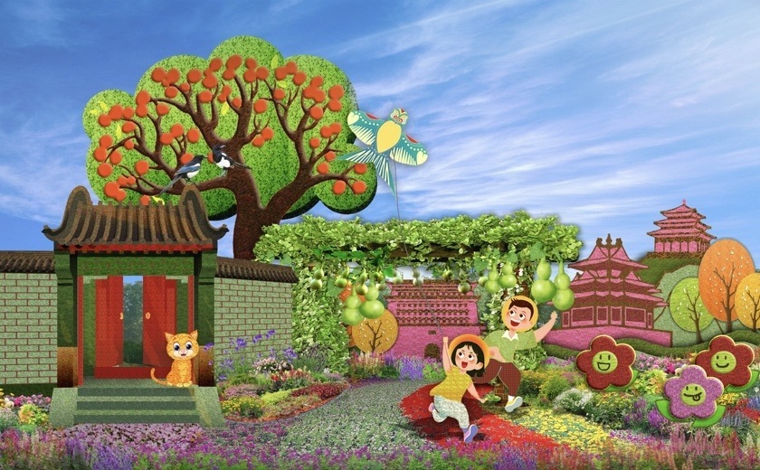3,東單東南角的“共同富?!敝黝}花壇頂高達(dá)9.5米,以欣欣向榮的城鄉(xiāng)融合發(fā)展為場(chǎng)景,描繪了中國(guó)式現(xiàn)代化全體人民共同富裕的美好藍(lán)圖。