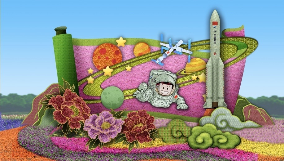 10,復(fù)興門東北角的“筑夢(mèng)未來(lái)”花壇頂高8.5米,以中國(guó)航天員、空間站為主景,寓意航天強(qiáng)國(guó)建設(shè)蓬勃發(fā)展,助力中國(guó)夢(mèng)早日實(shí)現(xiàn),全面推進(jìn)中華民族偉大復(fù)興,譜寫(xiě)新時(shí)代中國(guó)特色社會(huì)主義更加絢麗的華章。