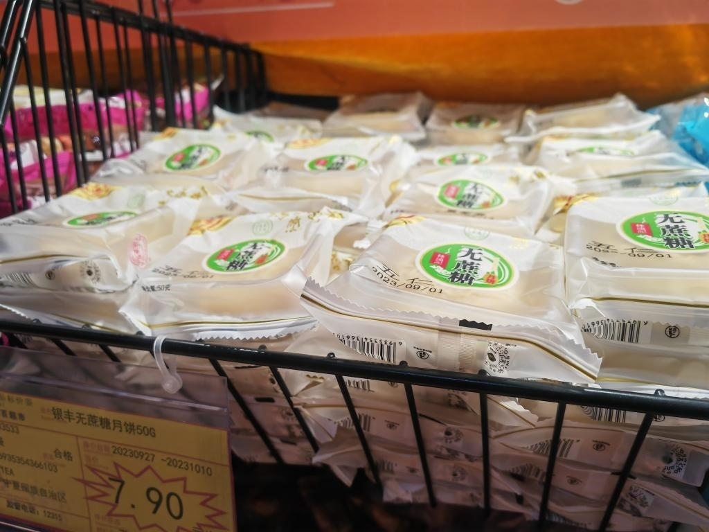 超市內銷售的無蔗糖月餅。新華社記者 蘇醒 攝
