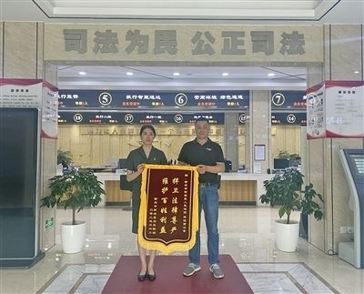 柯城區(qū)人民法院執(zhí)行干警收到當(dāng)事人送來(lái)的錦旗。 盧夢(mèng)瑩 攝