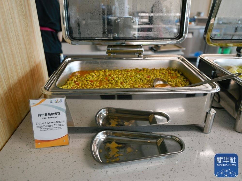 ↑這是7月14日拍攝的成都大運會主媒體中心媒體餐廳內(nèi)菜品。新華社記者 胥冰潔 攝