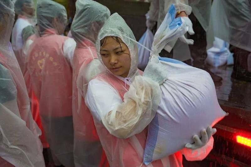 “加快速度裝好沙包!”“一個(gè)一個(gè)往后傳!”按照錢排鎮(zhèn)政府的統(tǒng)一部署,在保證安全的前提下,200余名學(xué)生志愿者參與沙袋填裝、搬運(yùn)和堆疊等臺(tái)風(fēng)防御工作。