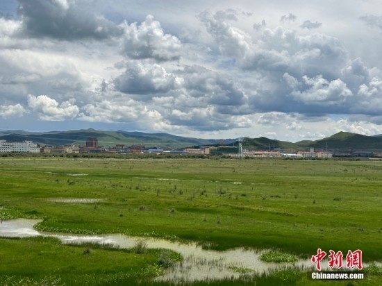 紅原也是全國三大濕地之一——若爾蓋濕地的重要組成部分。 圖為紅原牦牛現(xiàn)代農(nóng)業(yè)園區(qū)前的濕地。