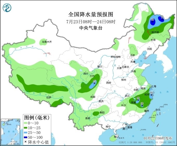 明天,內蒙古及東北地區(qū)降雨范圍縮小、強度減弱,黑龍江、吉林西部及甘肅東部、四川北部、浙江、福建北部、江西北部、西藏中部等地有中到大雨,黑龍江中西部部分地區(qū)暴雨(50~70毫米)。