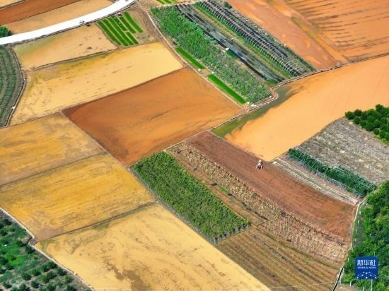 7月21日,農(nóng)民在南寧市青秀區(qū)長(zhǎng)塘鎮(zhèn)耕田(無(wú)人機(jī)照片)。新華社記者 周華 攝