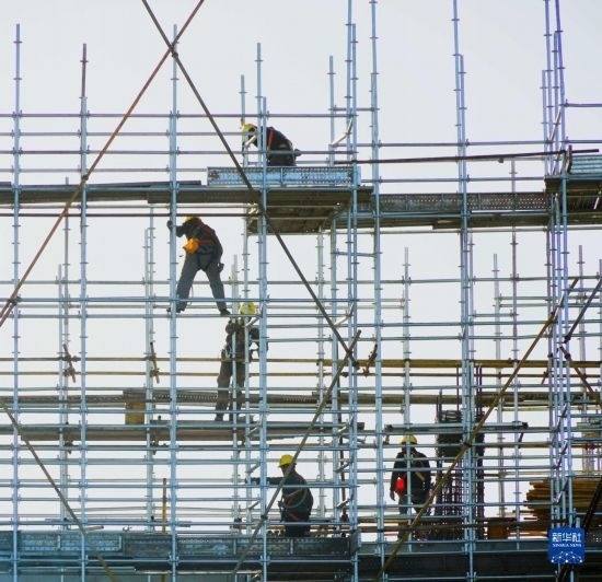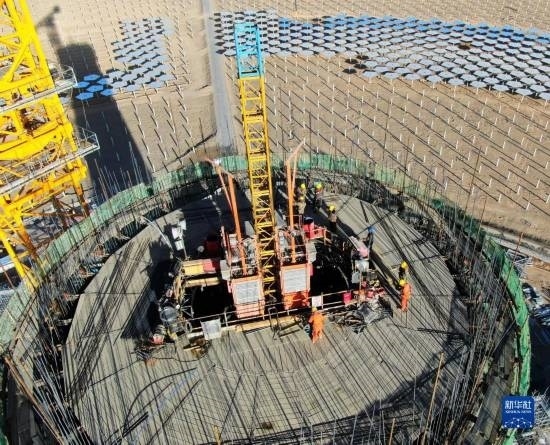7月21日,在阿克塞千萬千瓦級(jí)可再生能源多能互補(bǔ)基地,工人在匯東新能源75萬千瓦光熱+項(xiàng)目建設(shè)現(xiàn)場施工。新華社發(fā)(馬曉偉 攝)