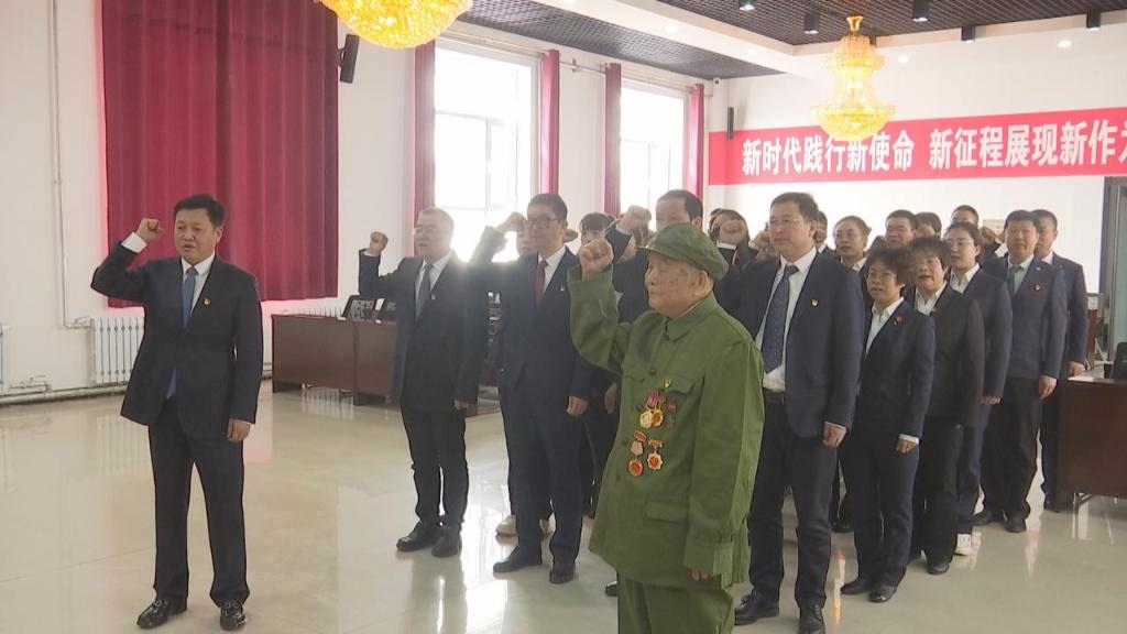 2023年4月6日,霍林河煤業(yè)集團(tuán)有限責(zé)任公司(以下簡(jiǎn)稱(chēng)霍煤集團(tuán))大樓會(huì)議室,96歲老兵顧克明在鮮紅黨旗前再次舉起右拳,莊嚴(yán)宣誓加入中國(guó)共產(chǎn)黨。