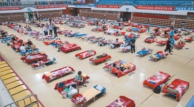 8月3日拍攝的北京房山區(qū)良鄉(xiāng)體育中心安置點。本報記者 張武軍攝