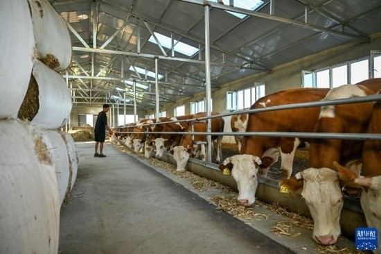 8月3日,在扎魯特旗巨日合鎮(zhèn),養(yǎng)殖戶李和在喂牛,他與合作社簽訂了托管代養(yǎng)協(xié)議,托管代養(yǎng)了10頭基礎母牛。