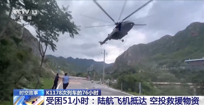 8月1日下午4:00,K1178次列車被困51小時后,某陸航旅4架滿載應(yīng)急物資的飛機,克服不利氣象因素,在北京門頭溝地區(qū)執(zhí)行空投任務(wù),并為K1178次列車空投救援物資。然而,由于沿河城站位于山谷中,地形狹長,周邊環(huán)境復雜,再加上氣象條件不好,空投一開始并不順利。