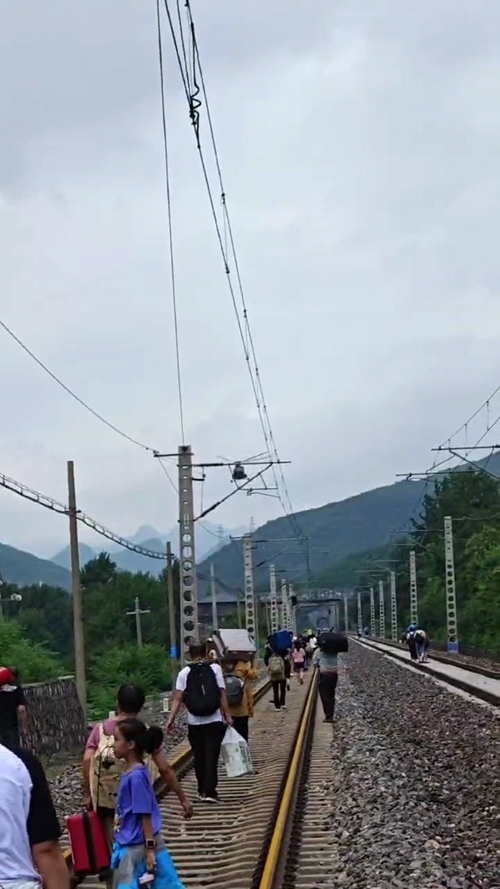 聽探過路的乘客說,目前有公路、鐵軌、山路這3個方向,軌道上的淤泥已經(jīng)能沒到膝蓋,山上破碎的石頭很鋒利、容易劃傷。他們決定沿著109國道走。