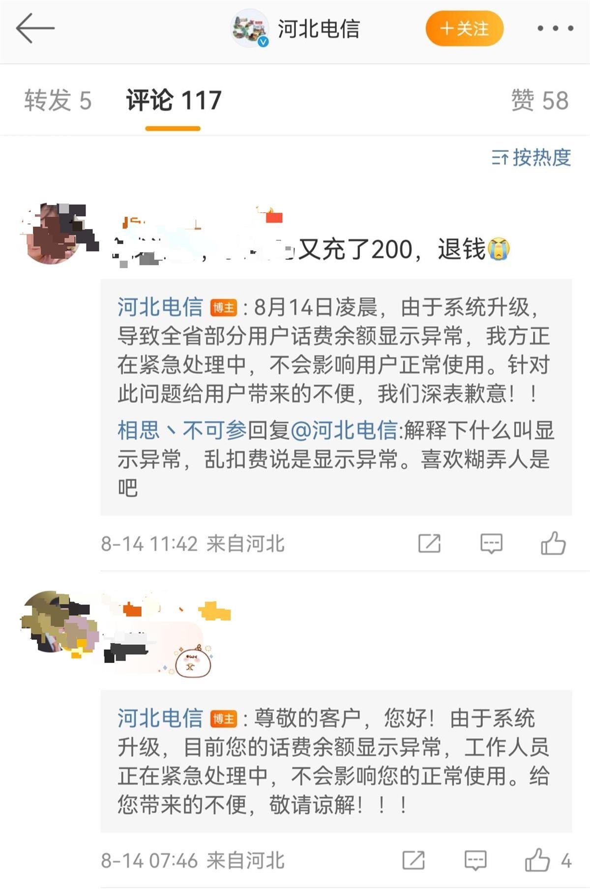 ·河北多名電信用戶稱手機莫名欠費,官方:系統(tǒng)升級導致,不影響通信。