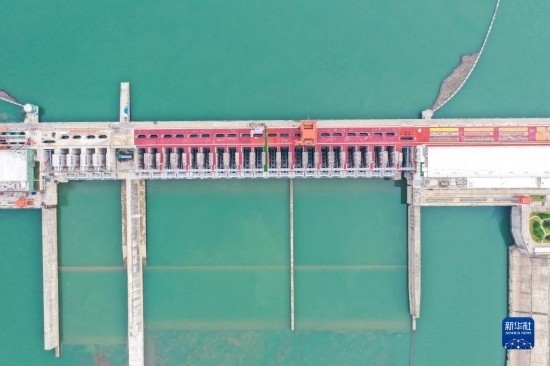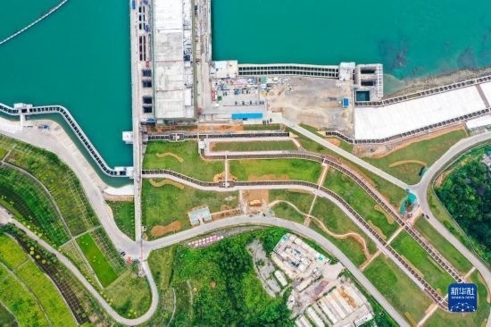 9月2日拍攝的廣西大藤峽水利樞紐黔江主壩魚道(無人機(jī)照片)。新華社記者 曹祎銘 攝
