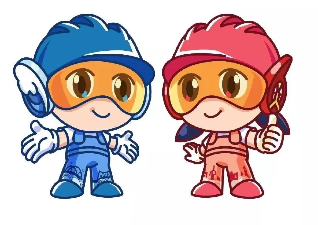 本屆大賽的吉祥物為“天天、津津”,形象為“一男、一女”兩個(gè)青年人物的造型,具有青春、活力、向上的鮮明特點(diǎn),色彩以藍(lán)色、紅色為主色調(diào),突出“技能藍(lán)、青春紅”,與大賽會(huì)標(biāo)“技”字標(biāo)識(shí)相呼應(yīng);服飾上通過(guò)統(tǒng)一的工裝服、安全帽、護(hù)目鏡、藍(lán)牙耳機(jī)等外形設(shè)計(jì),形象鮮明地展現(xiàn)新時(shí)代技能人才的外表特征;通過(guò)人物專(zhuān)注自信的表情和張開(kāi)雙臂、舉手點(diǎn)贊等形態(tài),凸顯了技能人才“力爭(zhēng)上游、奮勇拼搏”的精神面貌和天津人民“自信包容、樂(lè)觀好客”的性格特質(zhì)。同時(shí),通過(guò)摩天輪造型耳機(jī)、特色橋梁、港口、天津新老標(biāo)志性建筑等形象設(shè)計(jì),展現(xiàn)天津的城市元素。