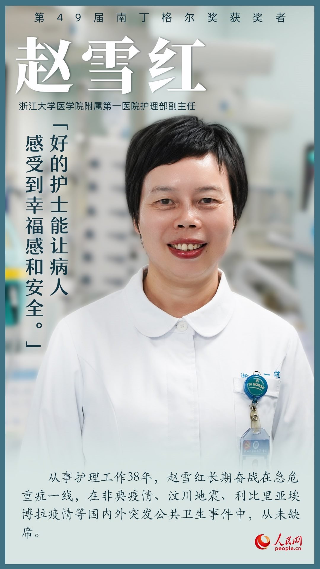 第49屆南丁格爾獎頒獎大會9月5日上午在北京人民大會堂舉行,7名我國護理工作者獲得南丁格爾獎章。她們辛勤工作在臨床第一線,全心全意為患者服務,生動詮釋了“人道、博愛、奉獻”的紅十字精神;她們用擔當奏響生命之歌,用奉獻書寫白衣使命,在推進健康中國建設的征程上步履不停。