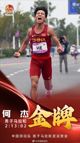 創(chuàng)造歷史!5日的杭州亞運(yùn)會馬拉松賽場上,中國選手何杰勇奪金牌,這是中國隊(duì)在亞運(yùn)史上首次獲得男子馬拉松金牌。