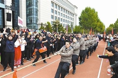 拔河是最后一個(gè)項(xiàng)目。賽場兩側(cè)人頭攢動、摩肩接踵,大家無不關(guān)注著這場團(tuán)結(jié)與力量的比試。掌聲、加油聲、歡呼聲響徹云霄,在一場場激烈對抗中,全場氣氛一次次達(dá)到高潮。