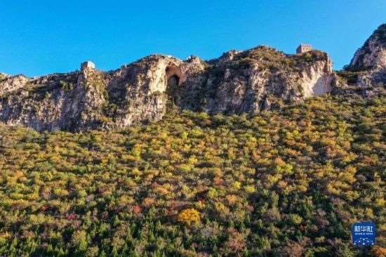掩映在紅葉中的司馬臺(tái)長城(10月15日攝)。