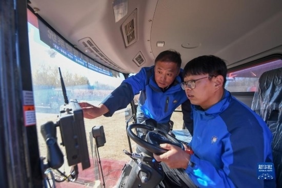 10月19日,在中國(guó)科學(xué)院“黑土糧倉(cāng)”科技會(huì)戰(zhàn)長(zhǎng)春示范區(qū)公主嶺示范基地,中國(guó)科學(xué)院東北地理與農(nóng)業(yè)生態(tài)研究所高級(jí)工程師陳國(guó)雙(左)與團(tuán)隊(duì)成員調(diào)試無(wú)人駕駛農(nóng)機(jī)。