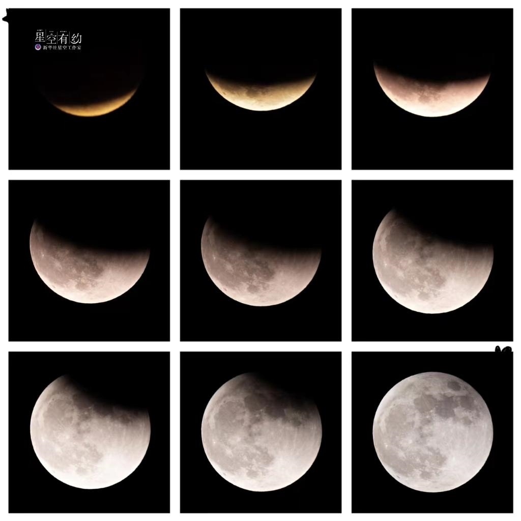 北京星空攝影愛好者浦石2021年11月19日在山東威海拍攝的月偏食(拼版)。(本人供圖)
