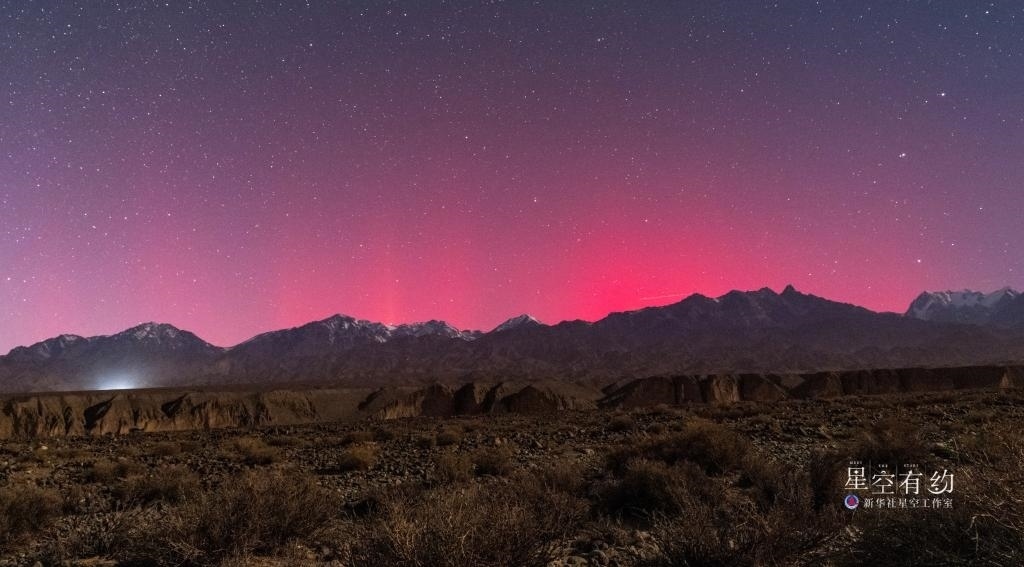 新疆星空攝影愛好者楊靂鵬2023年11月6日凌晨在新疆烏魯木齊達坂城拍攝的極光現(xiàn)象。(本人供圖)