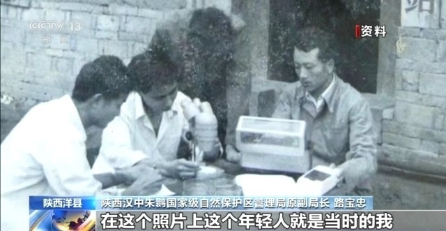 陜西漢中朱鹮國家級(jí)自然保護(hù)區(qū)管理局原副局長(zhǎng) 路寶忠:這個(gè)照片上這個(gè)年輕人就是當(dāng)時(shí)的我。我們4人小組要在野外去觀察朱鹮,帶上望遠(yuǎn)鏡,帶上海拔儀,然后掌握朱鹮的一些活動(dòng)規(guī)律。它在什么地方活動(dòng),這個(gè)地方海拔高度有多高,然后我們要做好觀察記錄。