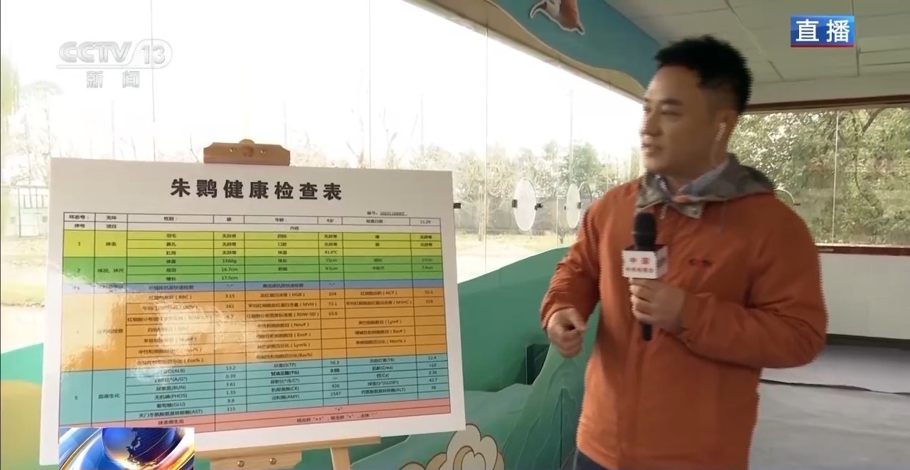 另一邊,保健醫(yī)生們正在給朱鹮抽血。完成抽血之后,朱鹮的血樣會(huì)通過機(jī)器完成血常規(guī)、生化指標(biāo)和寄生蟲檢測(cè)等50多項(xiàng)檢查,最終形成一張健康檢查表,相當(dāng)于我們的體檢。這樣精確的健康監(jiān)測(cè),就是保證朱鹮種源質(zhì)量的依據(jù)。