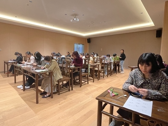 一些年輕人在夜校學(xué)習(xí)淮劇團(tuán)團(tuán)扇課程。上海市群眾藝術(shù)館供圖