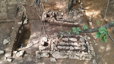 紅石砬子抗日根據地遺址,一處地窨子遺址的灶臺。新華社記者張博宇 攝