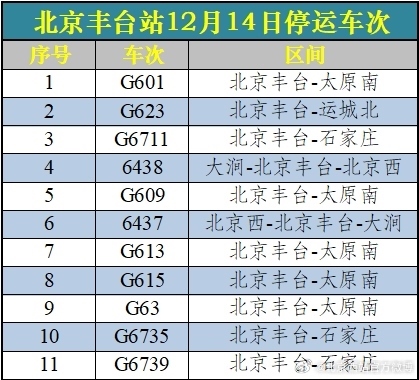 央視網(wǎng)消息:受降雪影響,12月14日北京西站、北京豐臺(tái)站部分列車臨時(shí)停運(yùn),已購(gòu)買停運(yùn)列車車票的旅客,可于30日內(nèi)辦理全額退票手續(xù)。請(qǐng)廣大旅客合理安排出行,關(guān)注車站公告或12306網(wǎng)站信息。