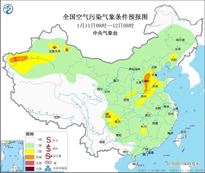 央視網(wǎng)消息:據(jù)中央氣象臺(tái),未來一周,全國(guó)大部多弱冷空氣活動(dòng),大氣擴(kuò)散條件較好。其中,11日至13日,華北中南部、黃淮中西部、汾渭平原等地的部分地區(qū)有輕至中度霾。此外,9日早晨至上午,湖北中東部、湖南中部、江西北部、江蘇中南部、四川盆地中東部等地的部分地區(qū)有大霧,局地有能見度不足200米的強(qiáng)濃霧。