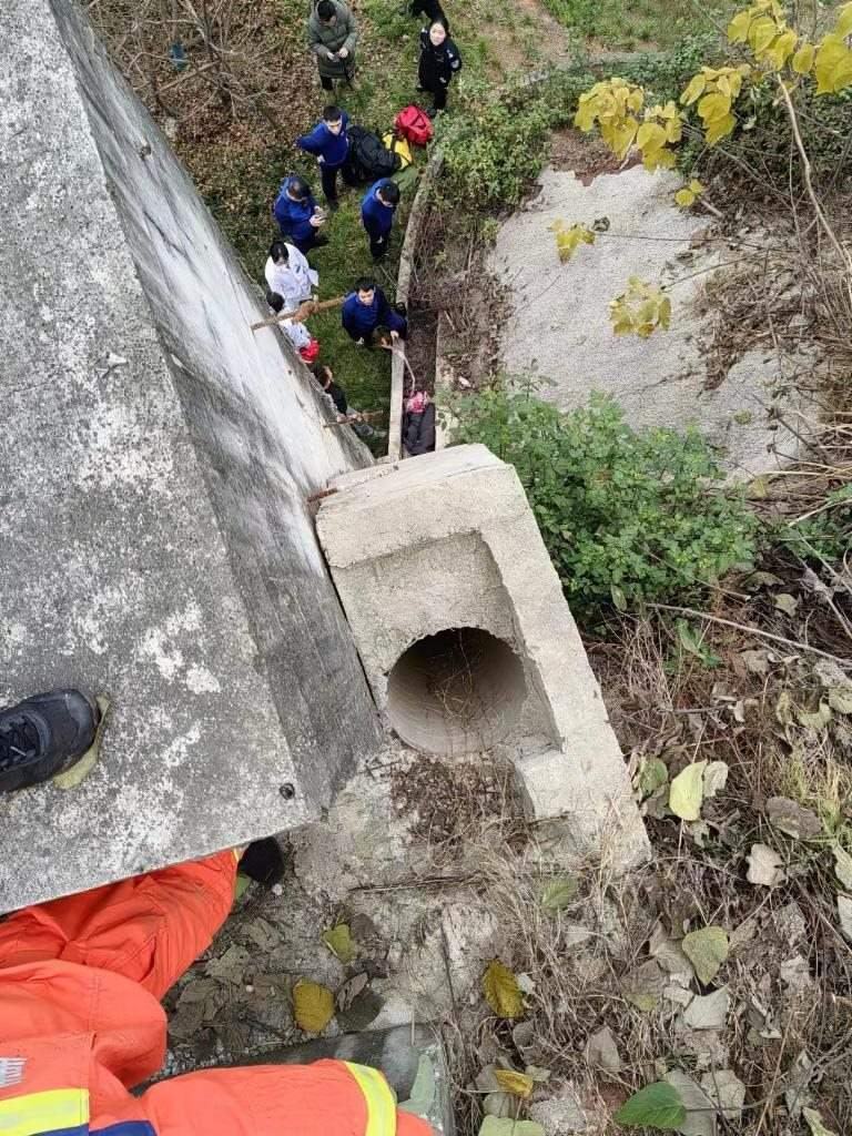 1月11日上午,魚洞派出所所長梁大勇等人在搜尋時(shí),發(fā)現(xiàn)一處涵洞下方的排水管道口,似乎有人影晃動。他當(dāng)機(jī)立斷進(jìn)行核實(shí),只見一小孩上半身被卡在管道中,下半身在管道外動彈不得。經(jīng)確認(rèn),被困的正是失蹤了6天6夜的小男孩。