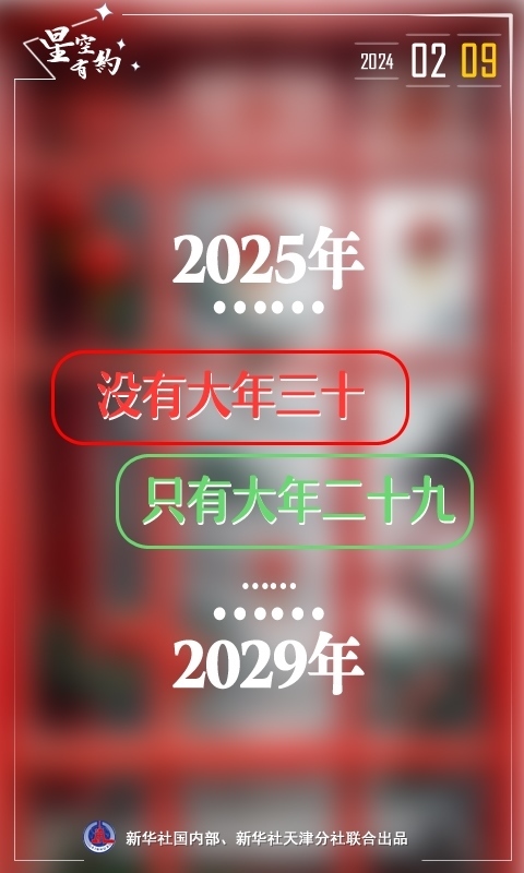 新華社天津1月13日電(記者周潤(rùn)?。┙找粍t“未來(lái)5年都沒(méi)有大年三十”的消息引發(fā)公眾關(guān)注。消息稱,2024年2月9日是近年來(lái)最后一個(gè)大年三十,因?yàn)閺?025年起至2029年都沒(méi)有大年三十,只有大年二十九。天文科普專家表示,大年三十時(shí)有時(shí)無(wú)是正常歷法現(xiàn)象,系農(nóng)歷大小月所致。